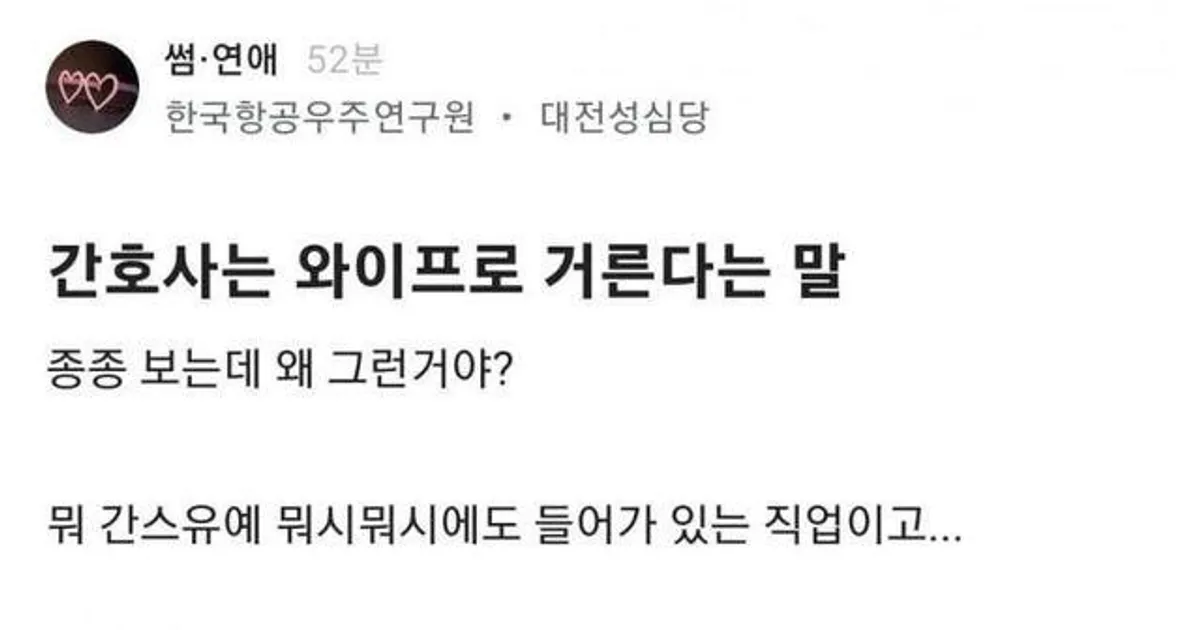 간호사를 와이프로 거른다는 이유가 궁금한 블라녀